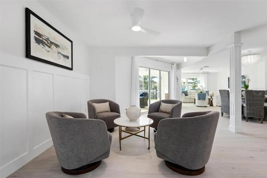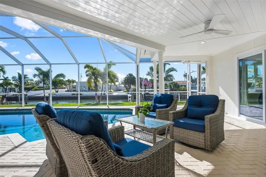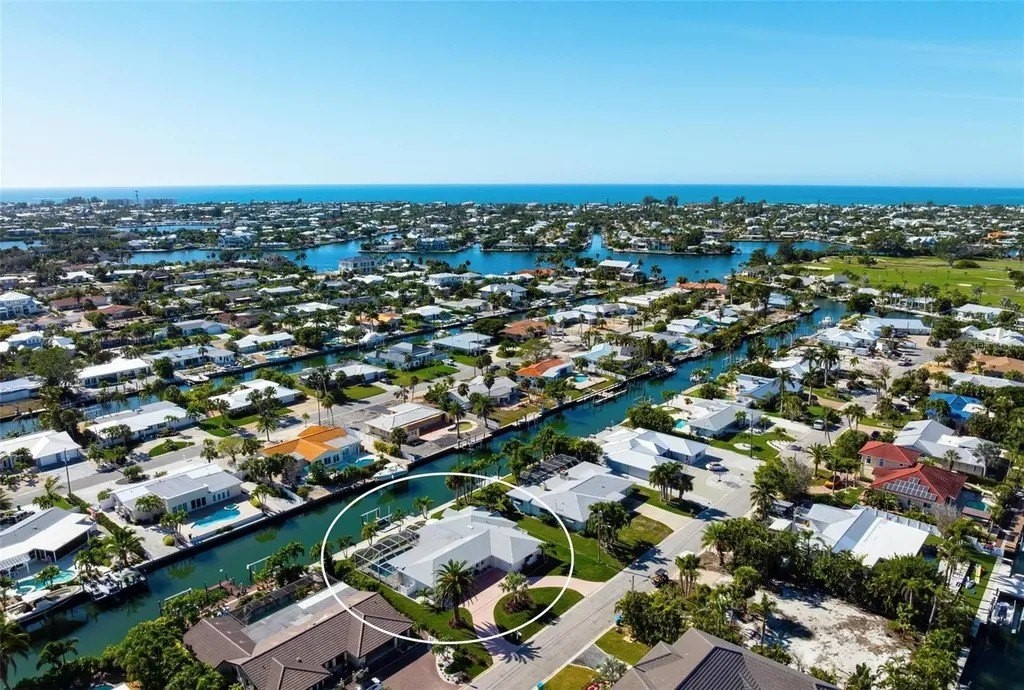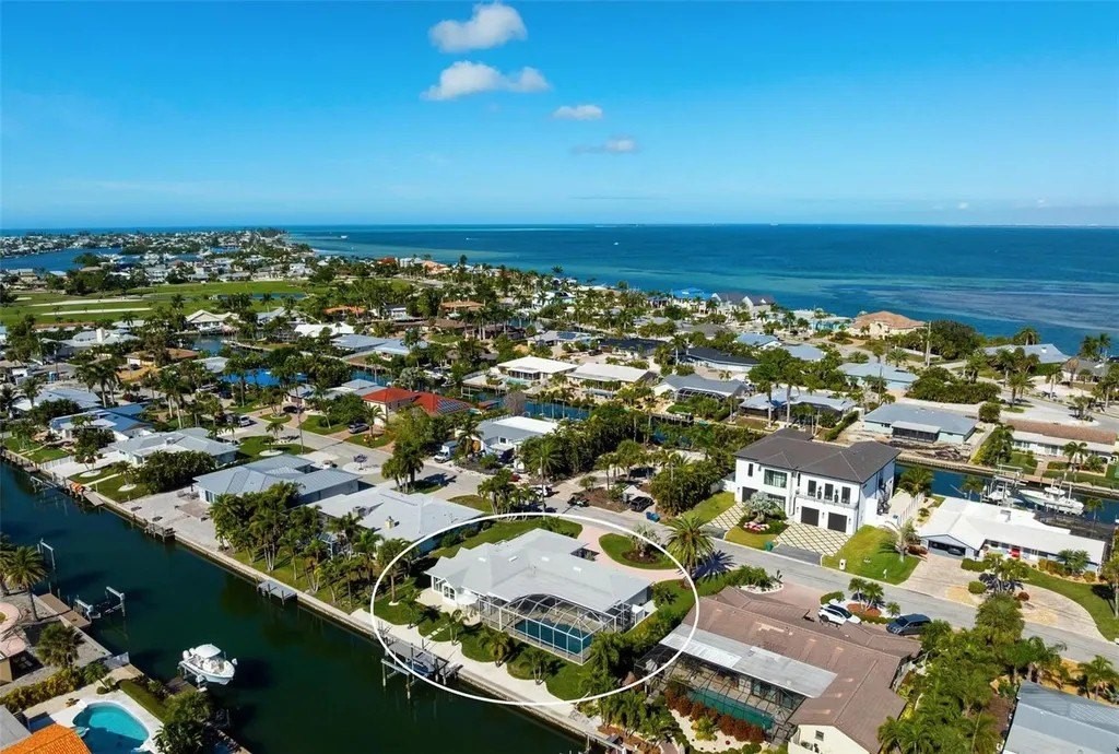 Waterfront Living at Its Finest in Key Royale on Anna Maria Island. Step into effortless luxury with this newly remodeled canal-front retreat, ideally located on an 11,543 sq ft lot in the heart of the coveted Key Royale community. Designed for relaxed coastal living, this beautifully updated 3-bedroom, 3.5-bath home offers the perfect blend of style, comfort, and waterfront lifestyle. The heart of the home is a stunning, chef-inspired kitchen featuring wood cabinetry, sleek quartz countertops, a gas range, wall oven, wet bar with wine refrigerator, and a generous center island - perfectly suited for both everyday living and elegant entertaining. Walls of sliding glass doors bathe the interior in natural light and open to a private outdoor oasis, creating a seamless indoor-outdoor flow. Two of the bedrooms have private ensuite baths, including the primary bedroom which features a spacious bedroom with an en-suite bath with a soaking tub, a walk-in shower and an outdoor shower providing comfort and privacy. Outside, enjoy the resort-style pool (resurfaced in 2020), unwind in the screened lanai, or take in peaceful canal views framed by lush tropical landscaping - all designed for lounging in both sun and shade. A true boater's dream, the property features a private dock with electric and water, plus a boat lift (installed in 2021), offering quick access to the sparkling waters of Tampa Bay and beyond. Additional updates include a roof installed in 2017 for added peace of mind. Just a short stroll or bike ride from Anna Maria Island's sugary beaches and moments from charming shops, dining, and island attractions; the location is as exceptional as the home itself. Residents of Key Royale enjoy access to a clubhouse and a 9-hole golf course, creating a lifestyle that perfectly balances boating, golf, and island leisure. Bring your boat, fishing poles, golf cart, and clubs - and start living the island life you've been dreaming of. This is a rare opportunity to own a truly special slice of waterfront paradise.